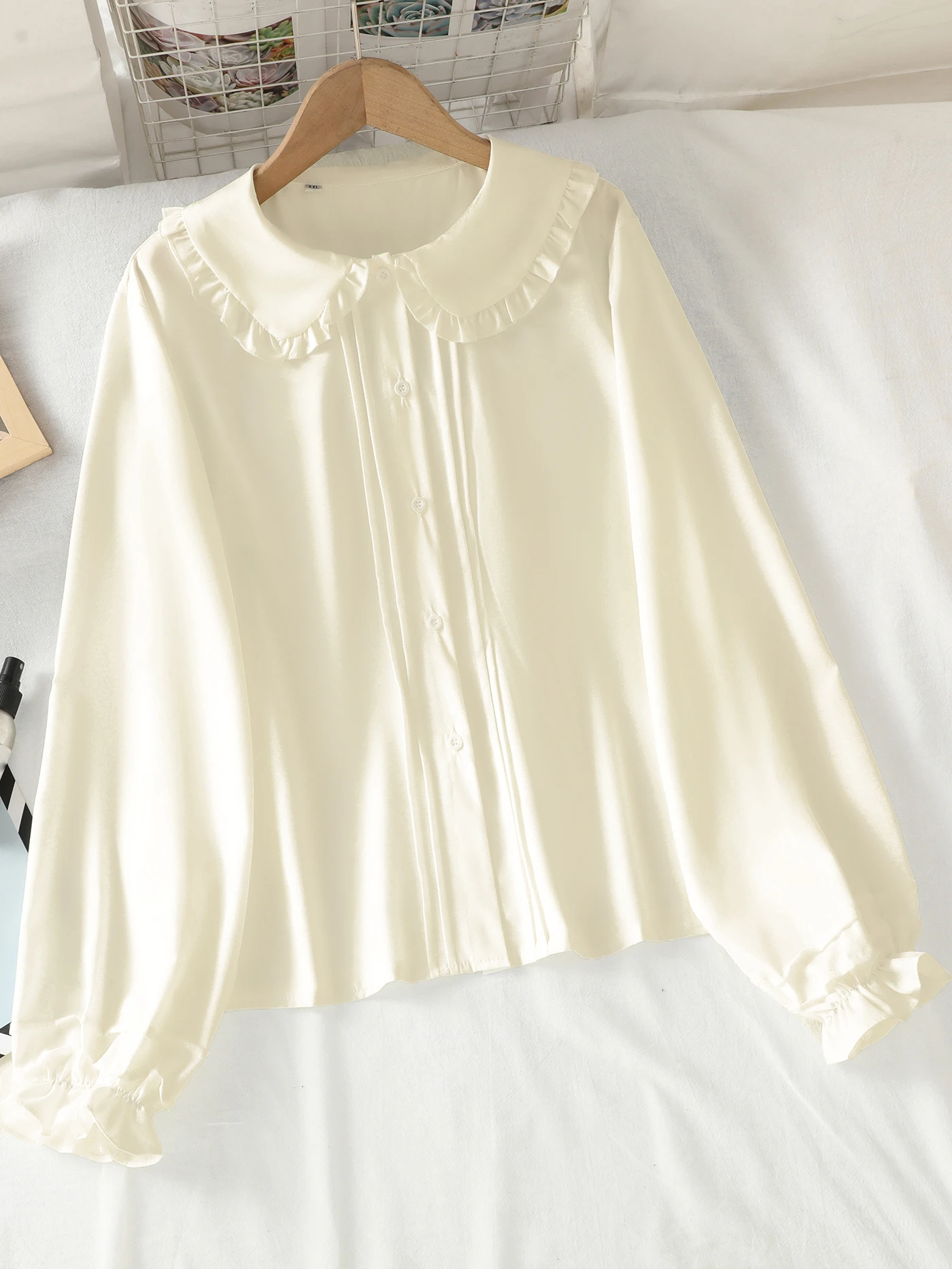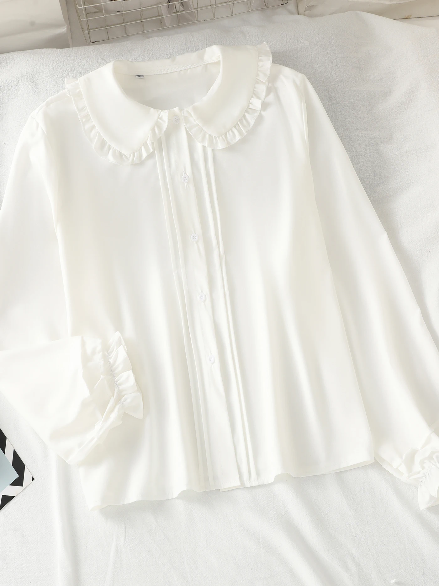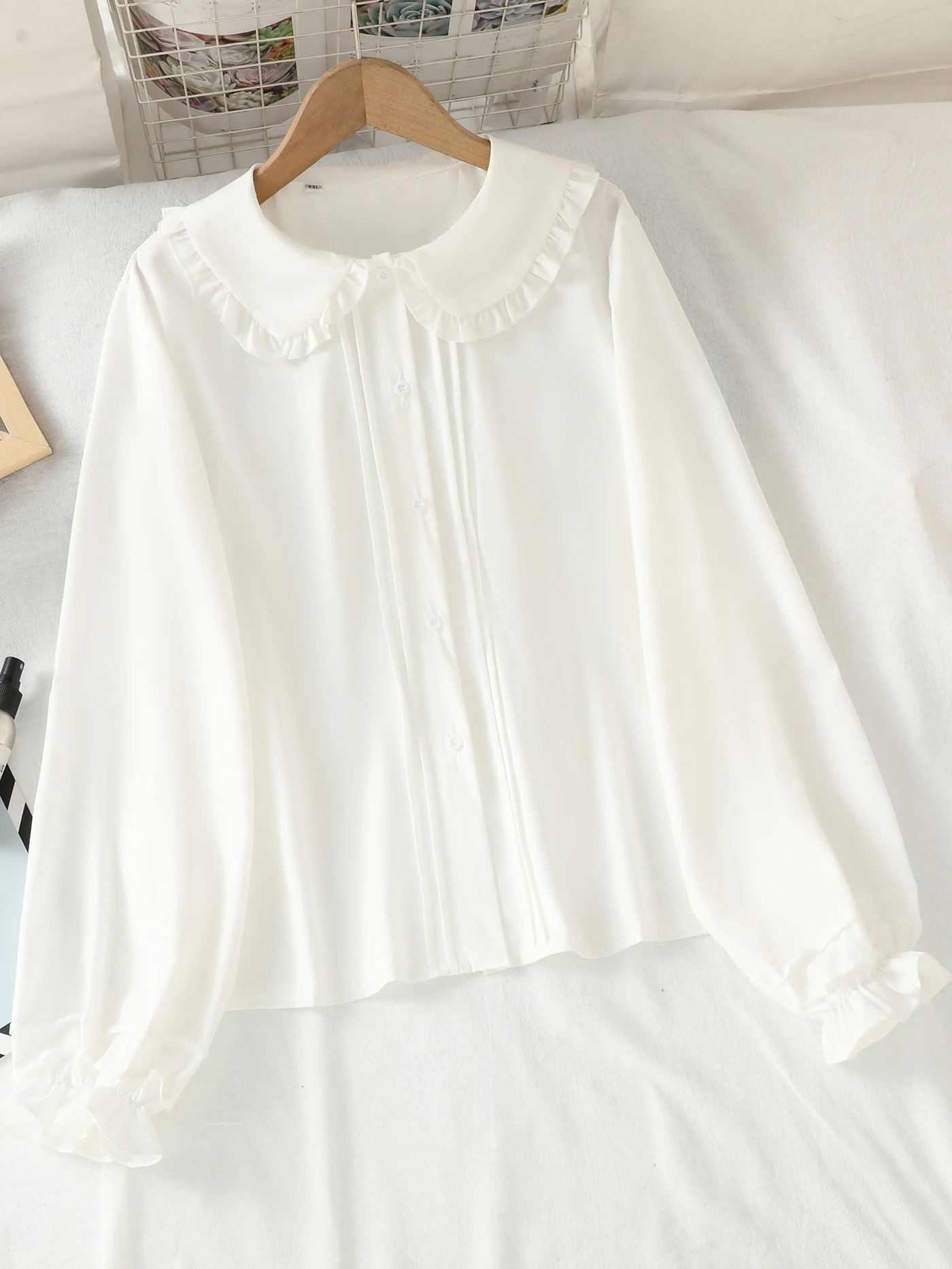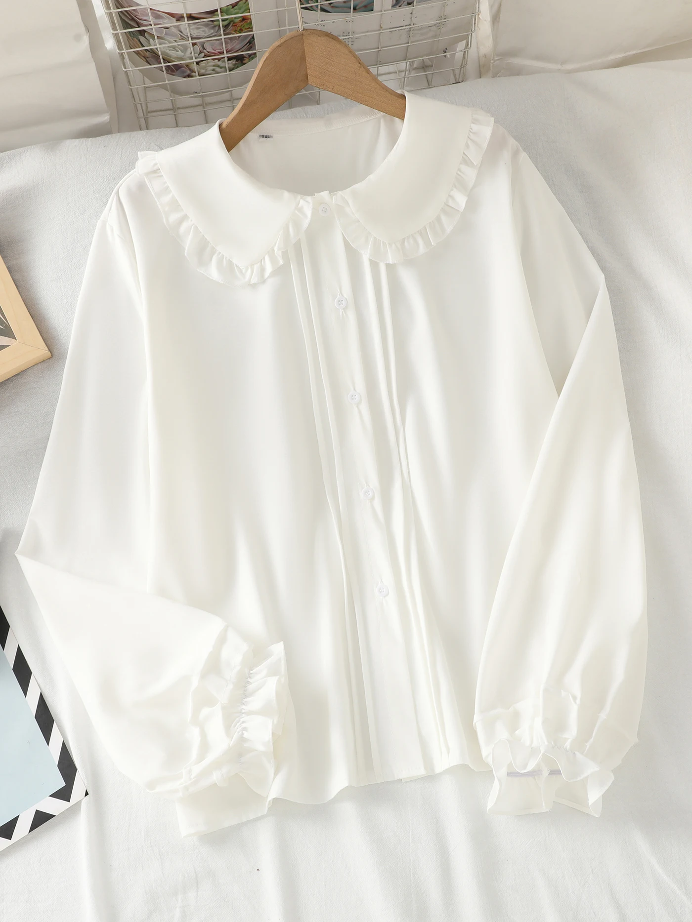 Long-sleeved blouse with a Peter Pan collar, ruffles and lantern sleeves for girls and teenagers