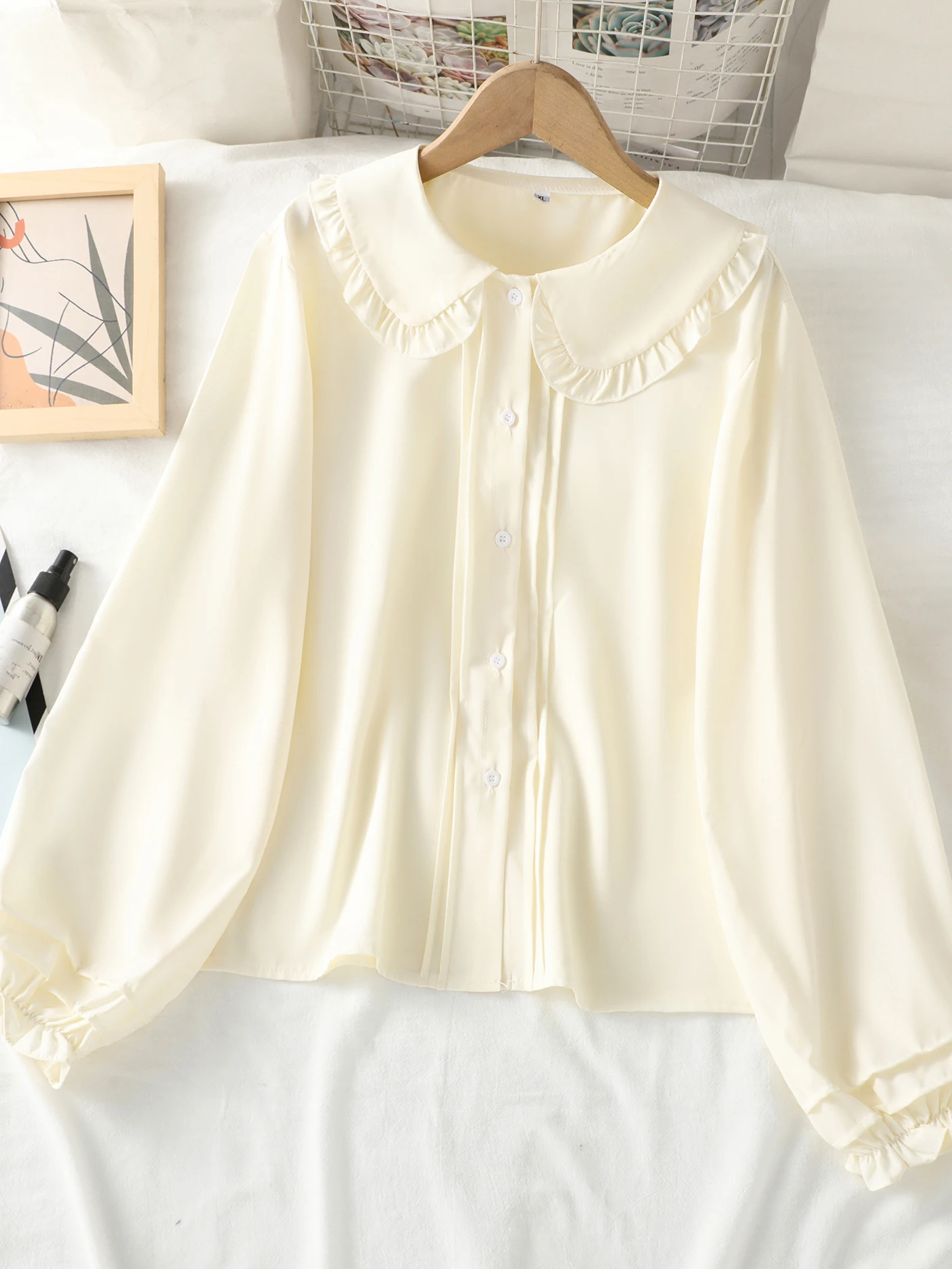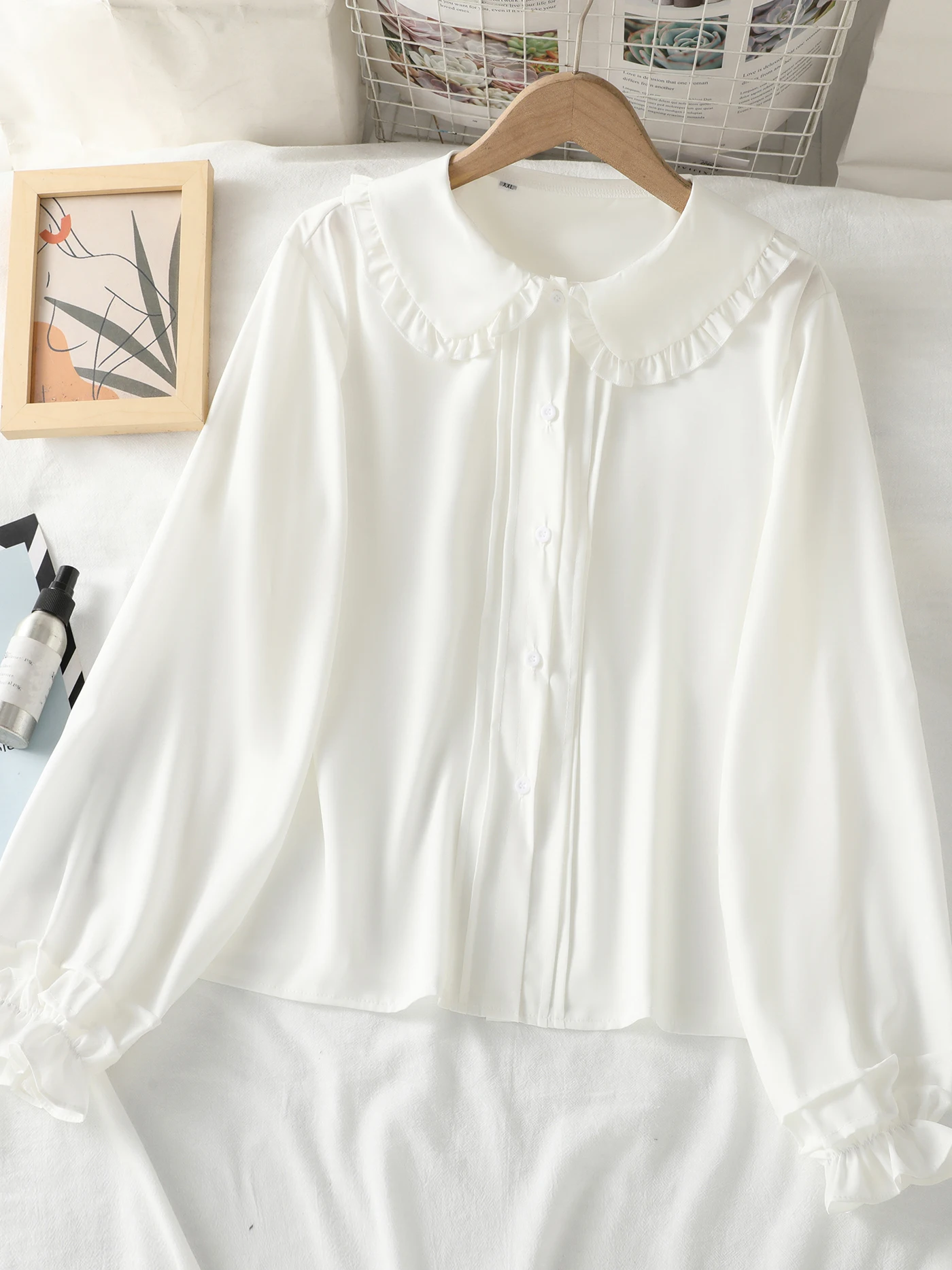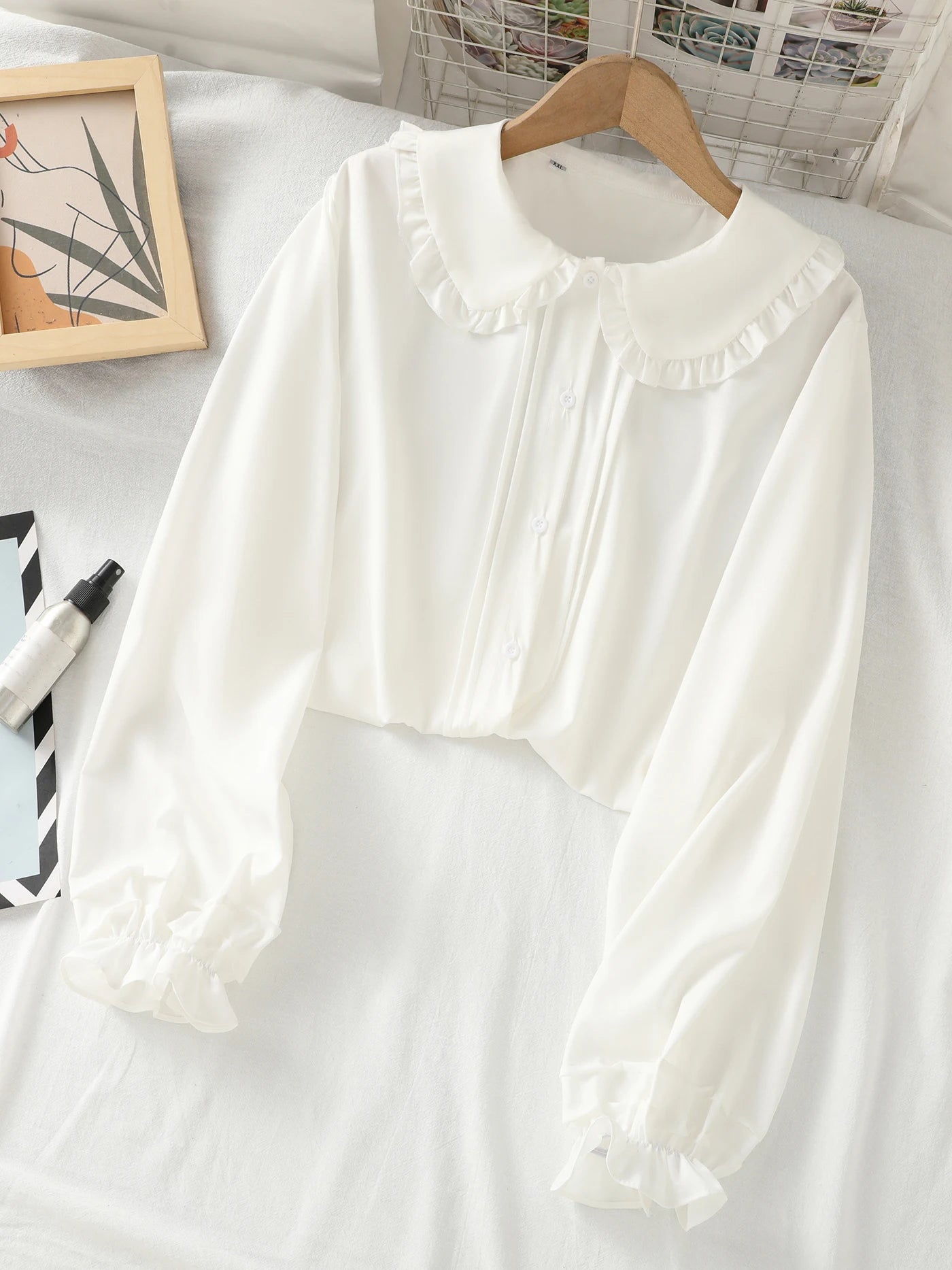 Long-sleeved blouse with a Peter Pan collar, ruffles and lantern sleeves for girls and teenagers