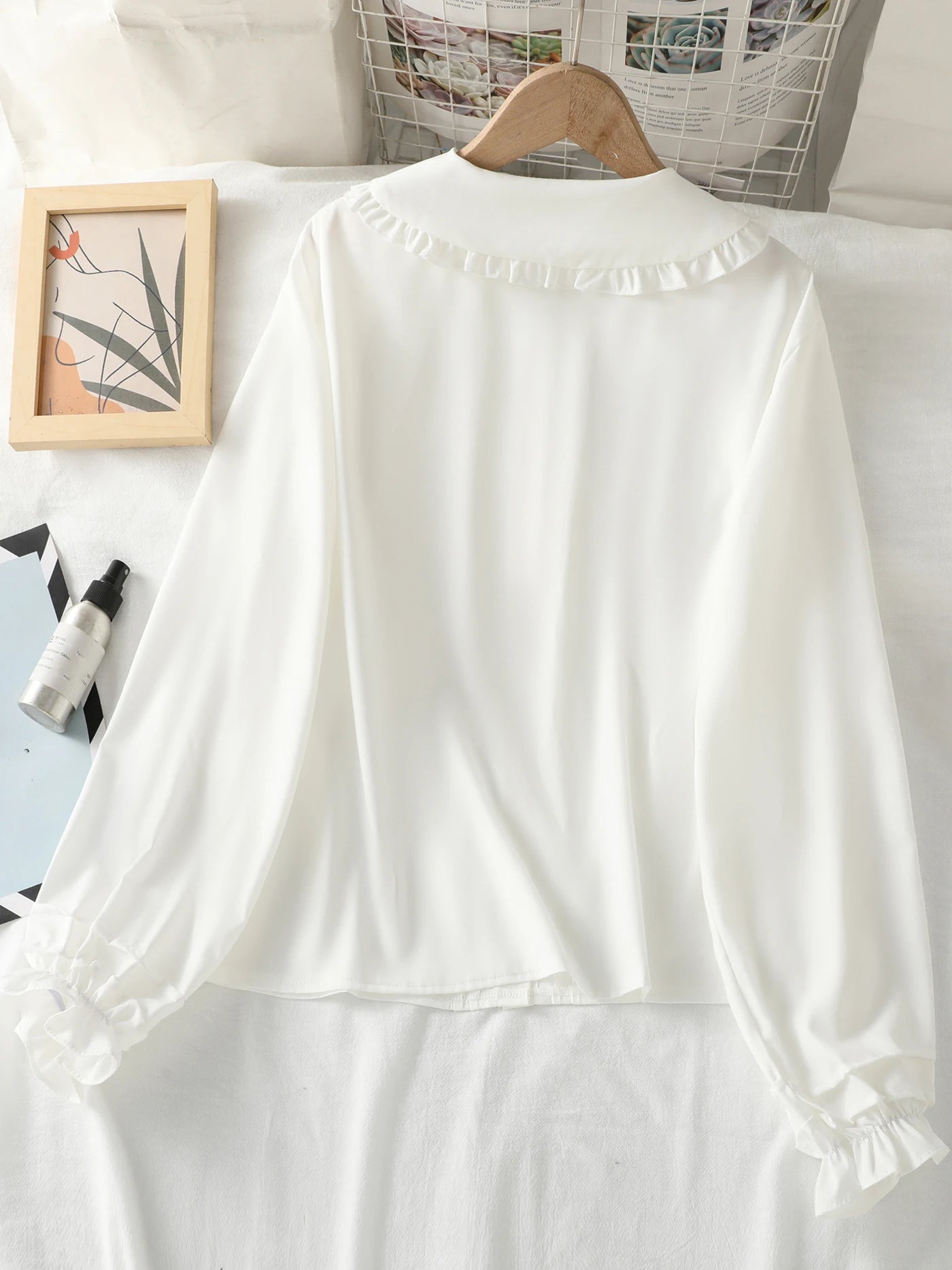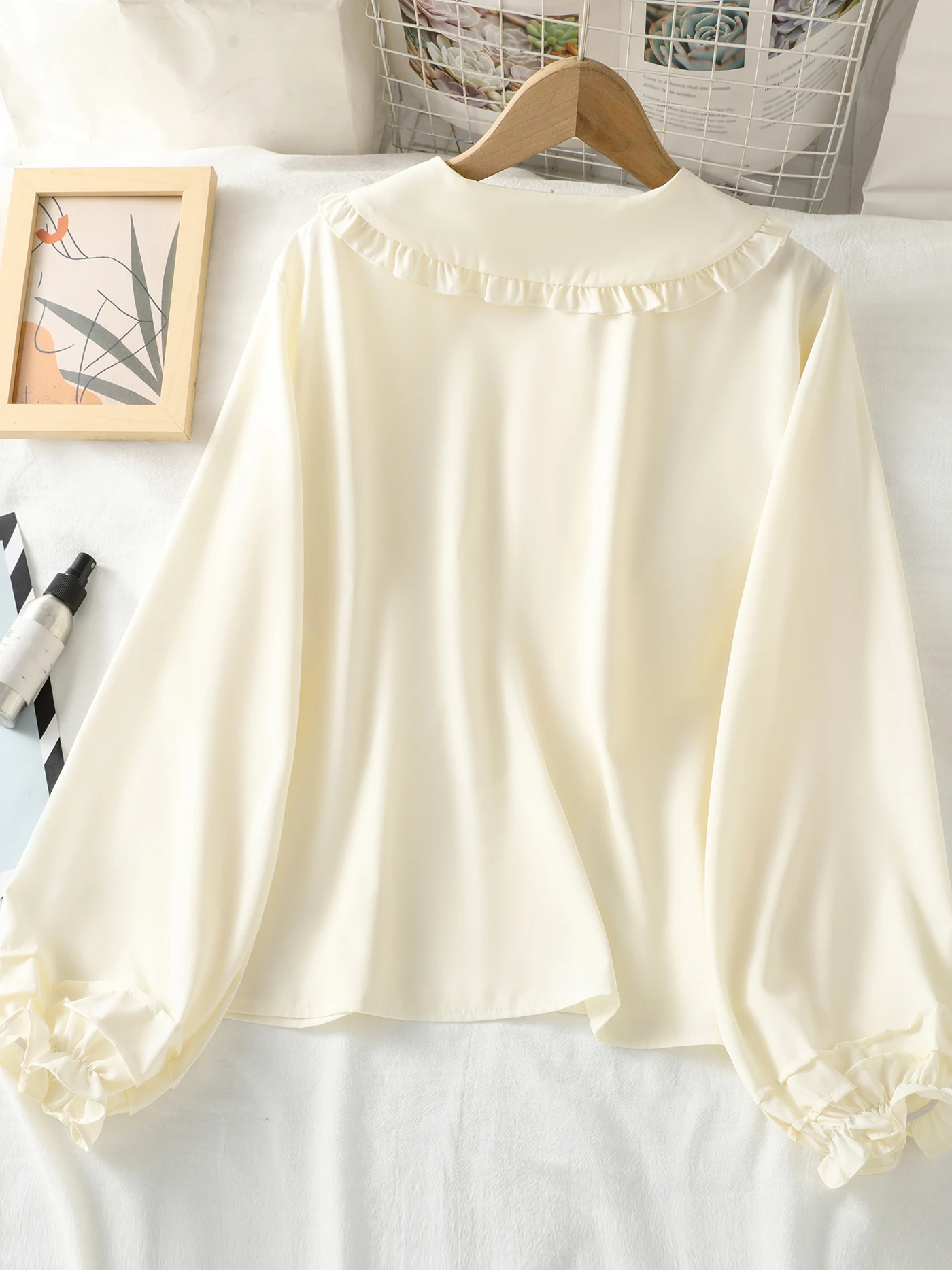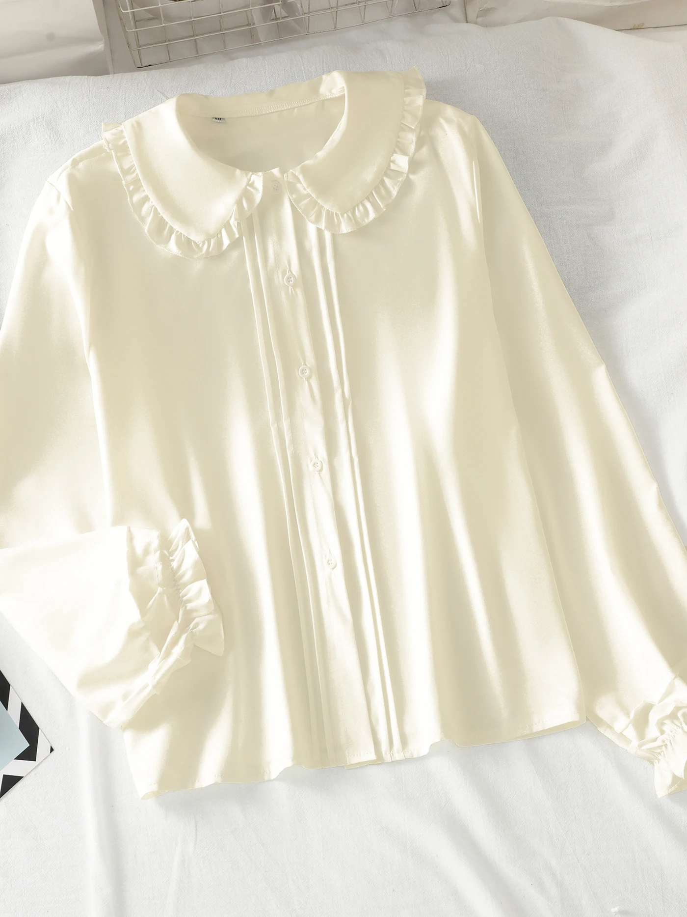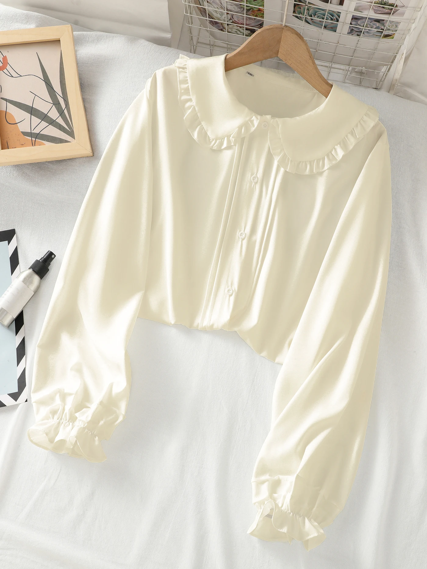 Long-sleeved blouse with a Peter Pan collar, ruffles and lantern sleeves for girls and teenagers