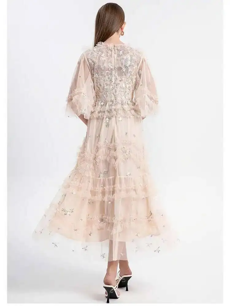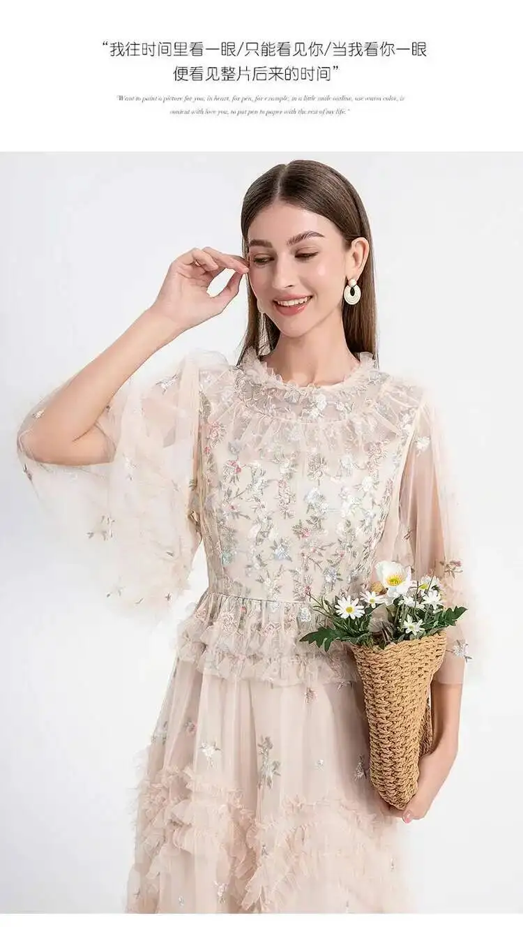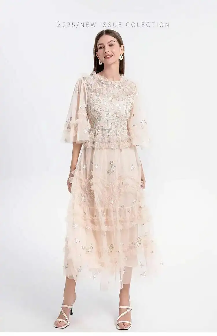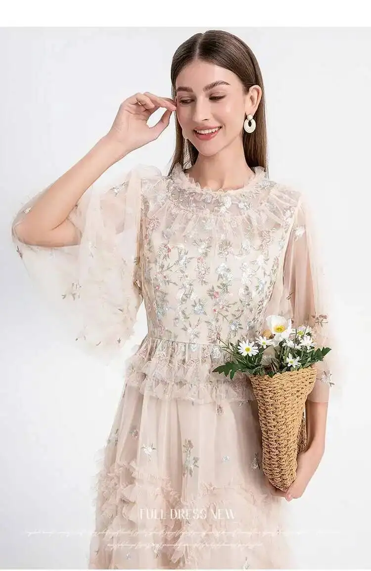 Runway Luxury Long Dresses Women 2026 Summer Holiday Embroidery Flower Ruffles Midi Party Evening Dress Lady Prom Vestidos