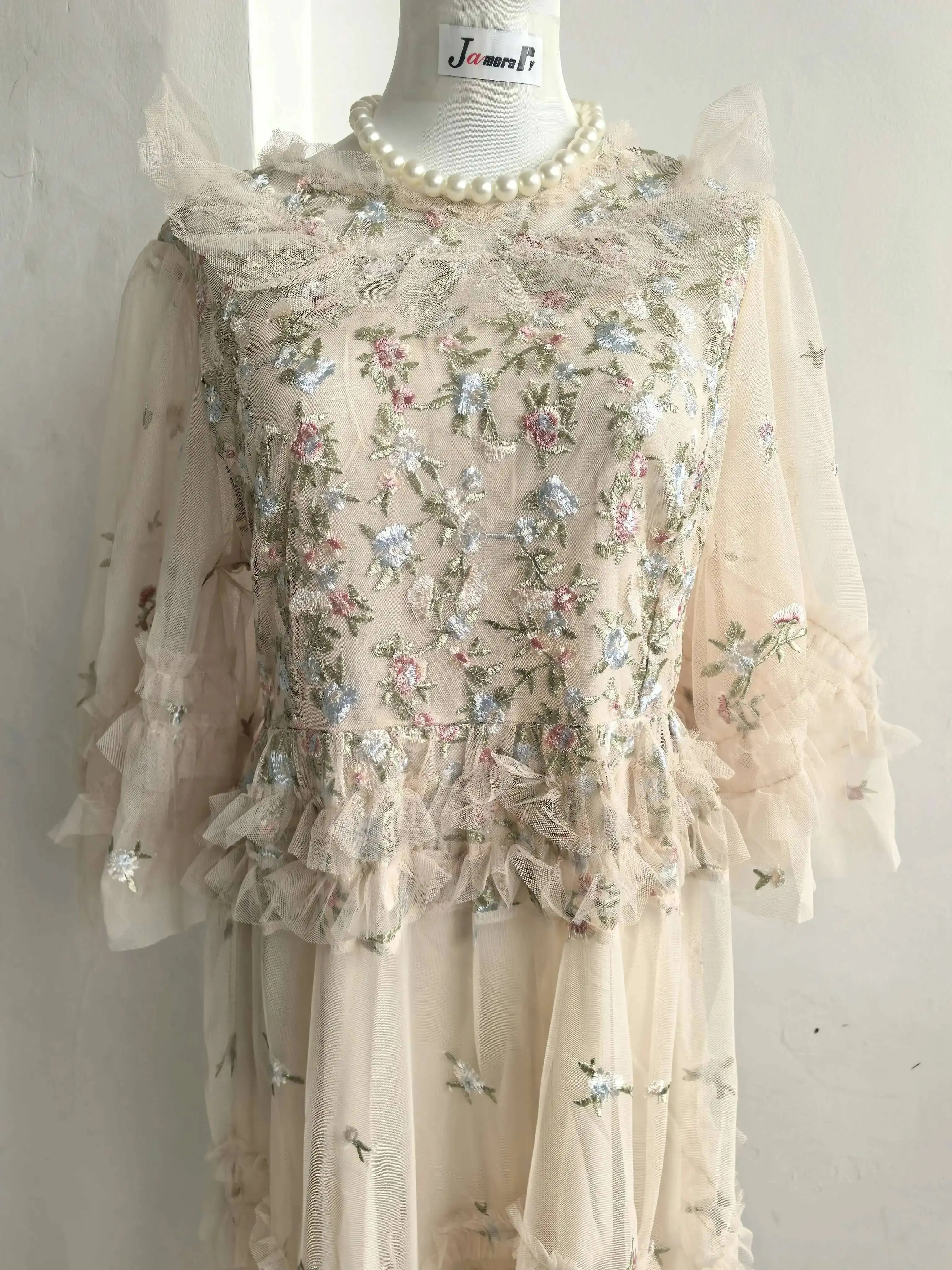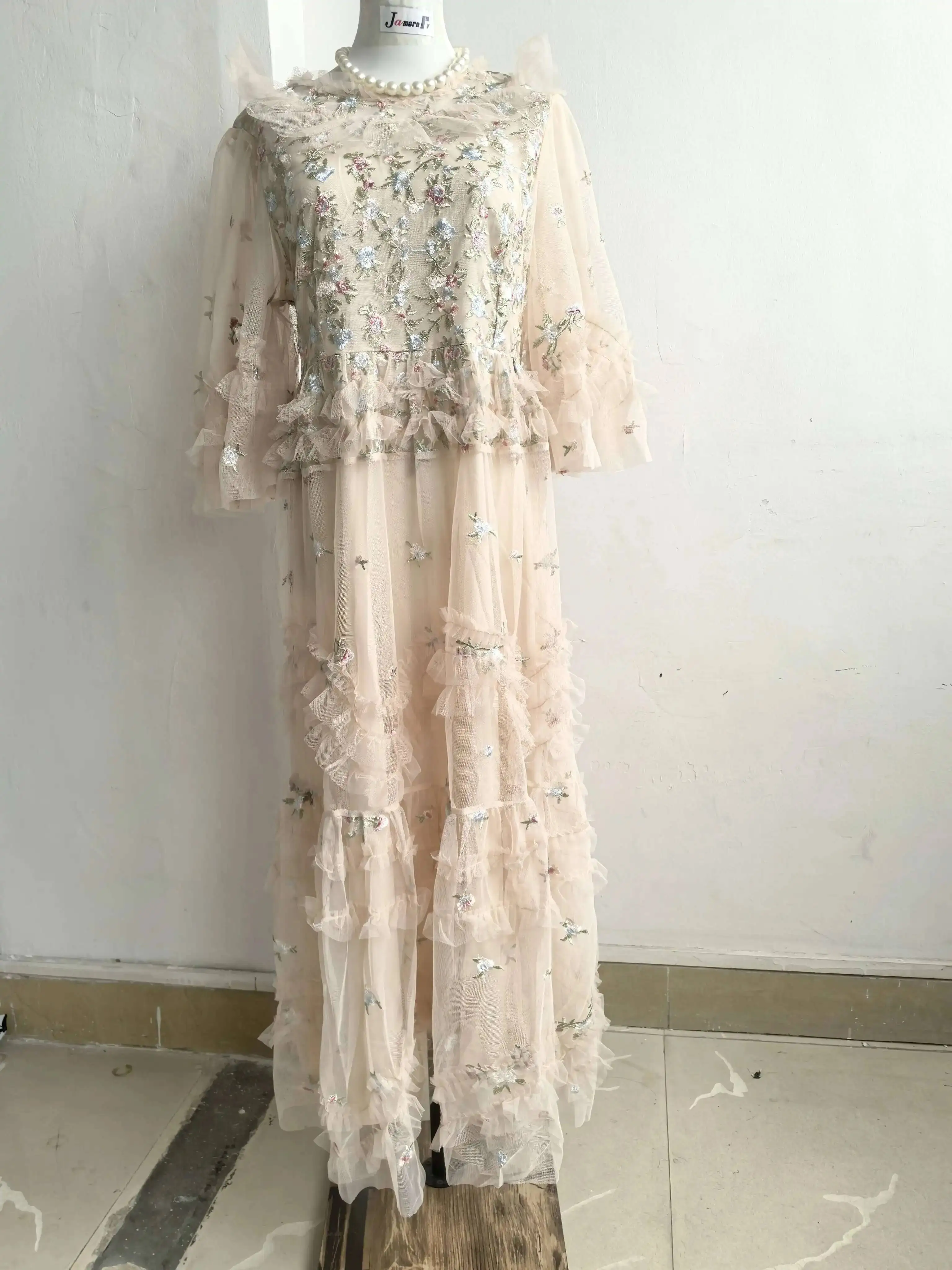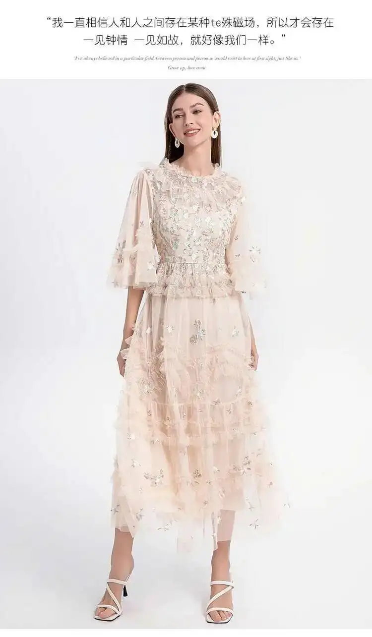 Runway Luxury Long Dresses Women 2026 Summer Holiday Embroidery Flower Ruffles Midi Party Evening Dress Lady Prom Vestidos