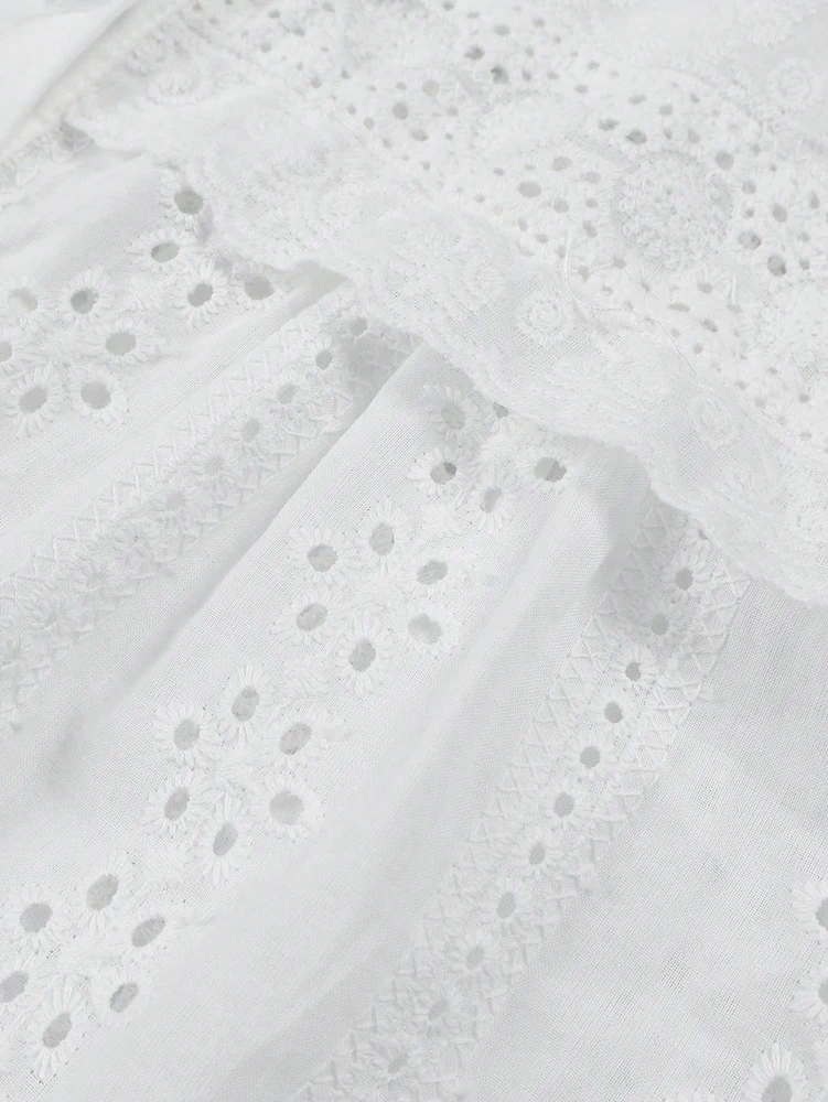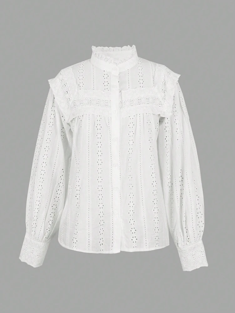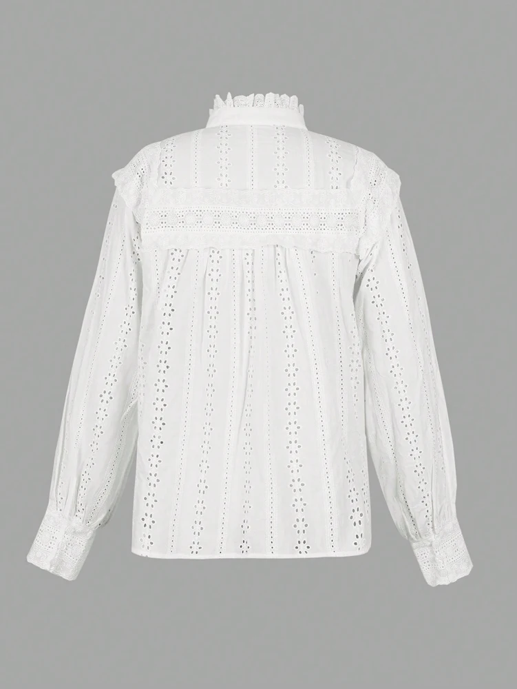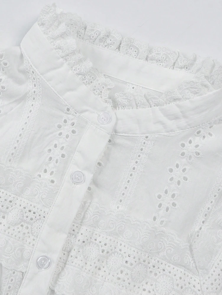 Spring/Summer 2026 New Arrivals European & American Women's Wear Vacation Style Solid-Colour Lace-Up Embroidered Blouse