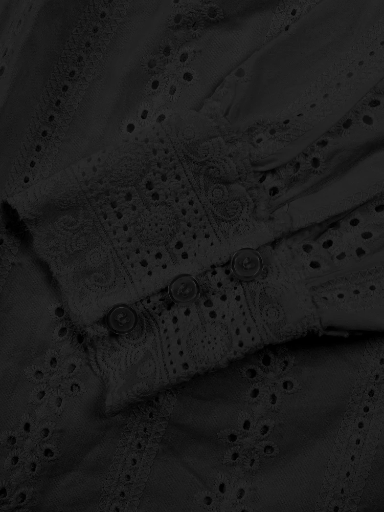 The blouse's lace-up design and embroidered details add an elegant touch, making it a standout piece in any wardrobe.