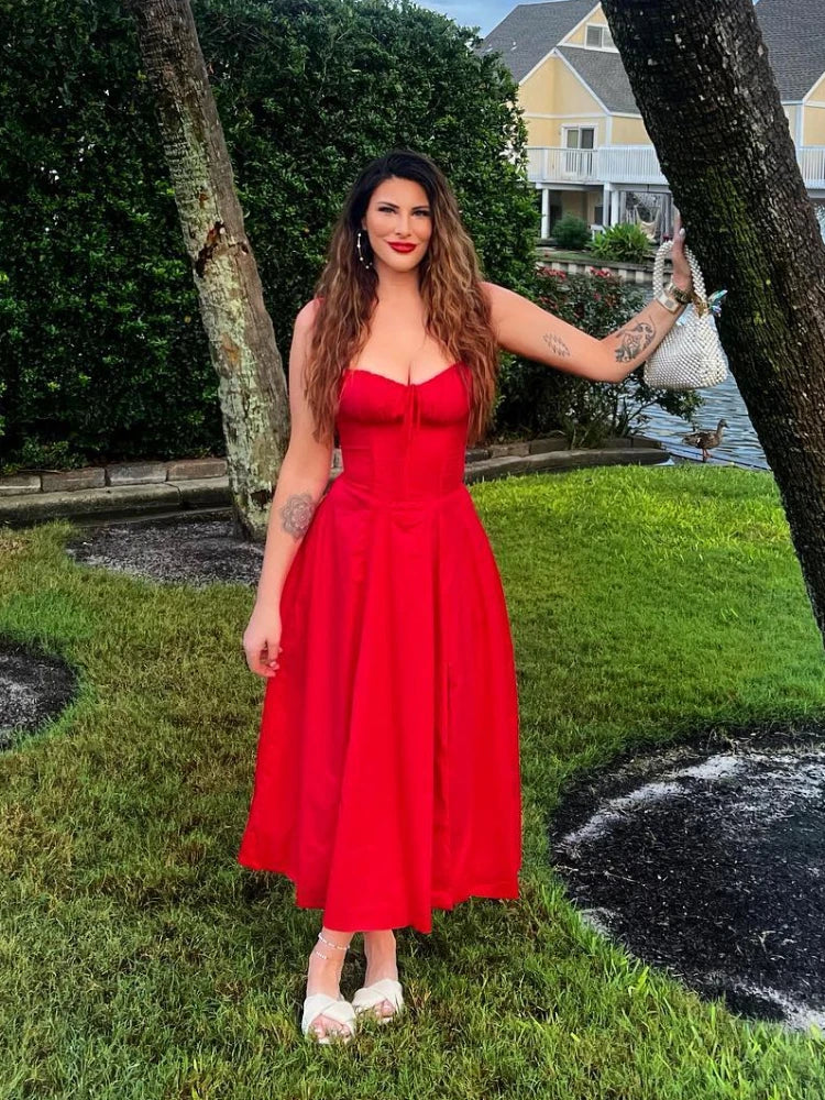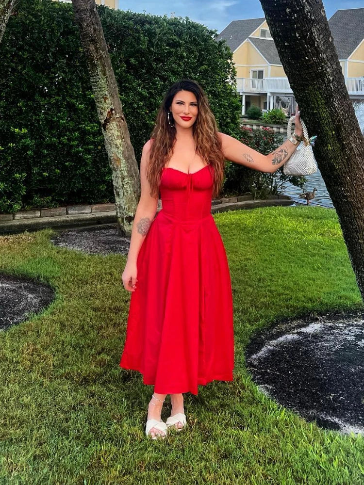 Suninheart Full Lining Elegant Lace Up Holiday Party Dresses Midi Sexy Spaghetti Strap Split Dress White Summer Dress Women 2026