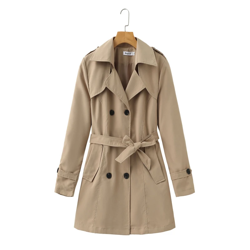 Women's Windbreaker Mid-Length Trench Coat 2025 Spring New Korean Slim Waist British Casual Autumn Coat With Belt Outwear Trend