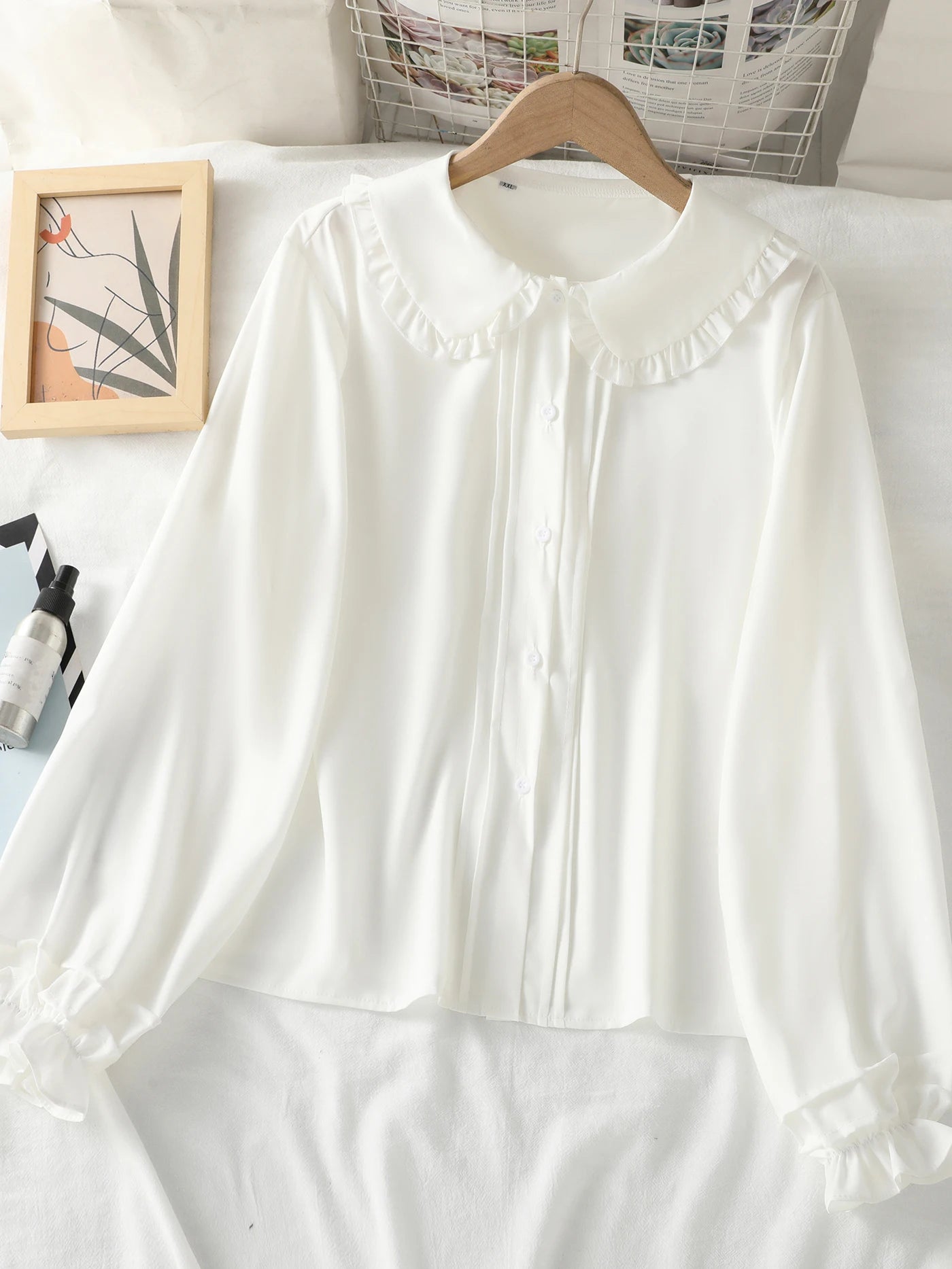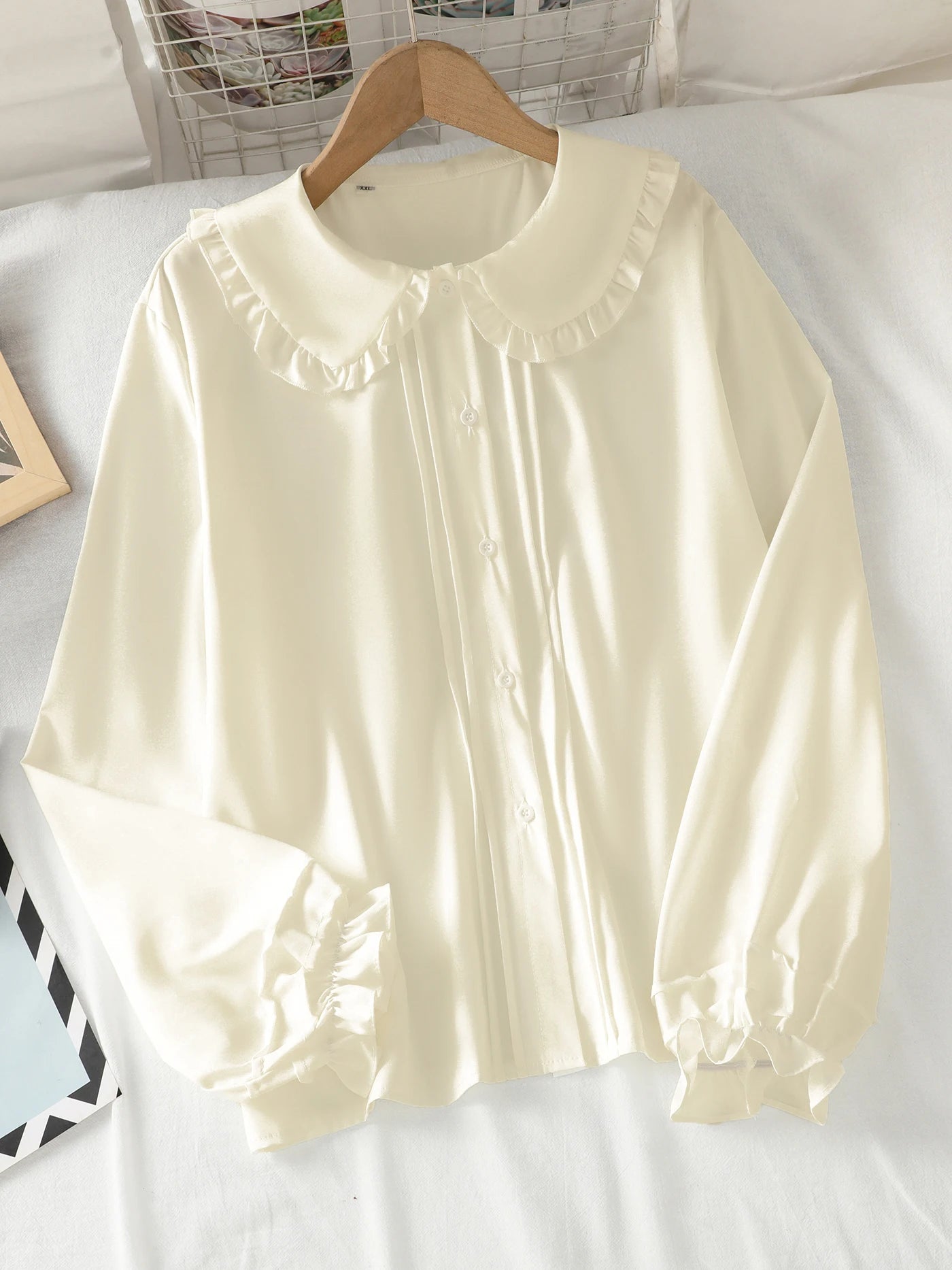 Long-sleeved blouse with a Peter Pan collar, ruffles and lantern sleeves for girls and teenagers