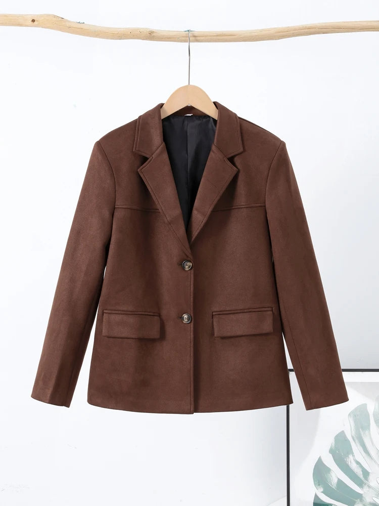 Women 's Suede jacket Vintage Laple Full Sleeve Pockets Thicken Outwears Female 2025 Spring Fashion New Lady Demi-season jacket