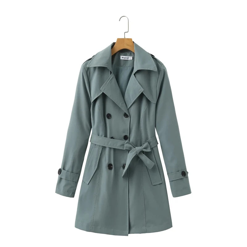 Women's Windbreaker Mid-Length Trench Coat 2025 Spring New Korean Slim Waist British Casual Autumn Coat With Belt Outwear Trend